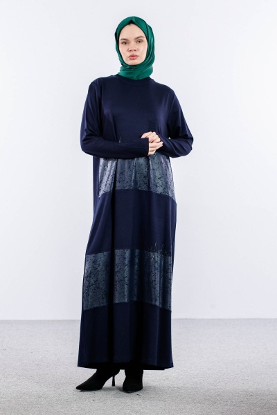 25113 Elbise 44-46-48 Deri Garni - Siyah_k.deri - 2