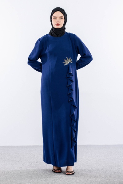 2547 Elbise 44-52 Şık Volan Detay - Siyah