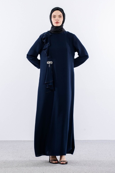 2559 Elbise 42-50 Şık Tas Detay - Sax - 1