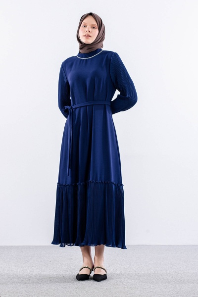 2565 Elbise 42-50 Plise Detay - Siyah - 5