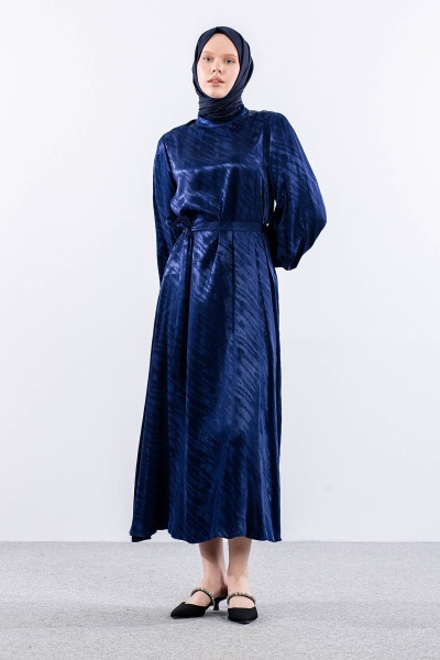2573 Elbise 36-44 Balon Kol Saten Jakar Detay - Siyah - 4