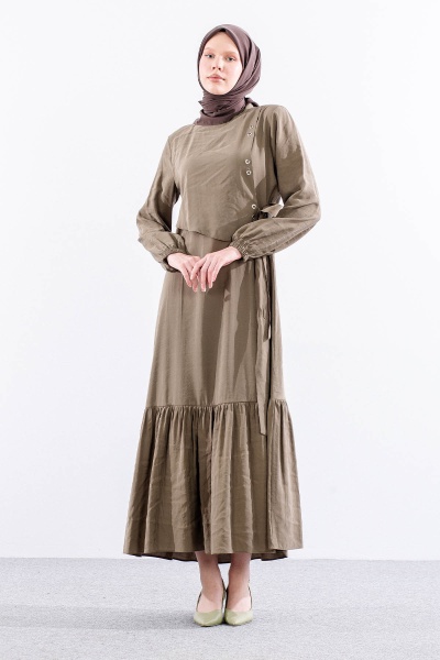 2576 Elbise 38-48 Kusgozu Detay - Kahve