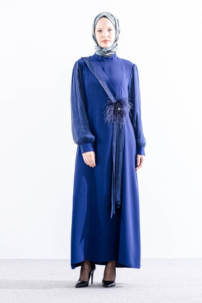 2583 şik Elbi̇se 42-50 Organze Garni - Siyah