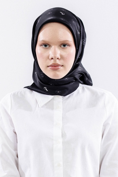 4638 İpek Eşarp 90*90 Sura Logo - Siyah_gold