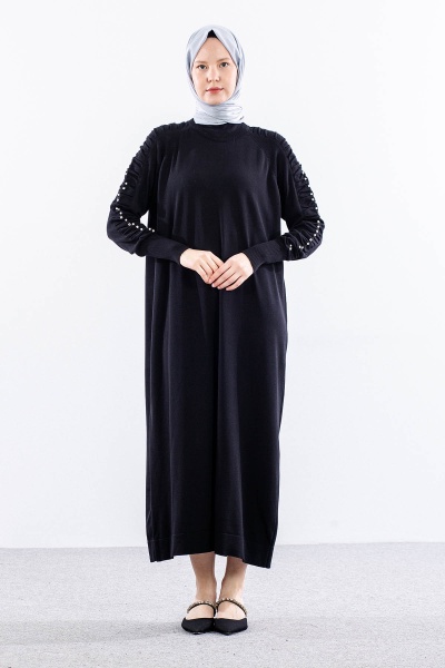 7055 Triko Elbise Tek - Kahve - 1