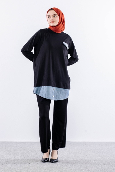 844-58 Tunik 40- Etekucu Kot Garni - Vizon