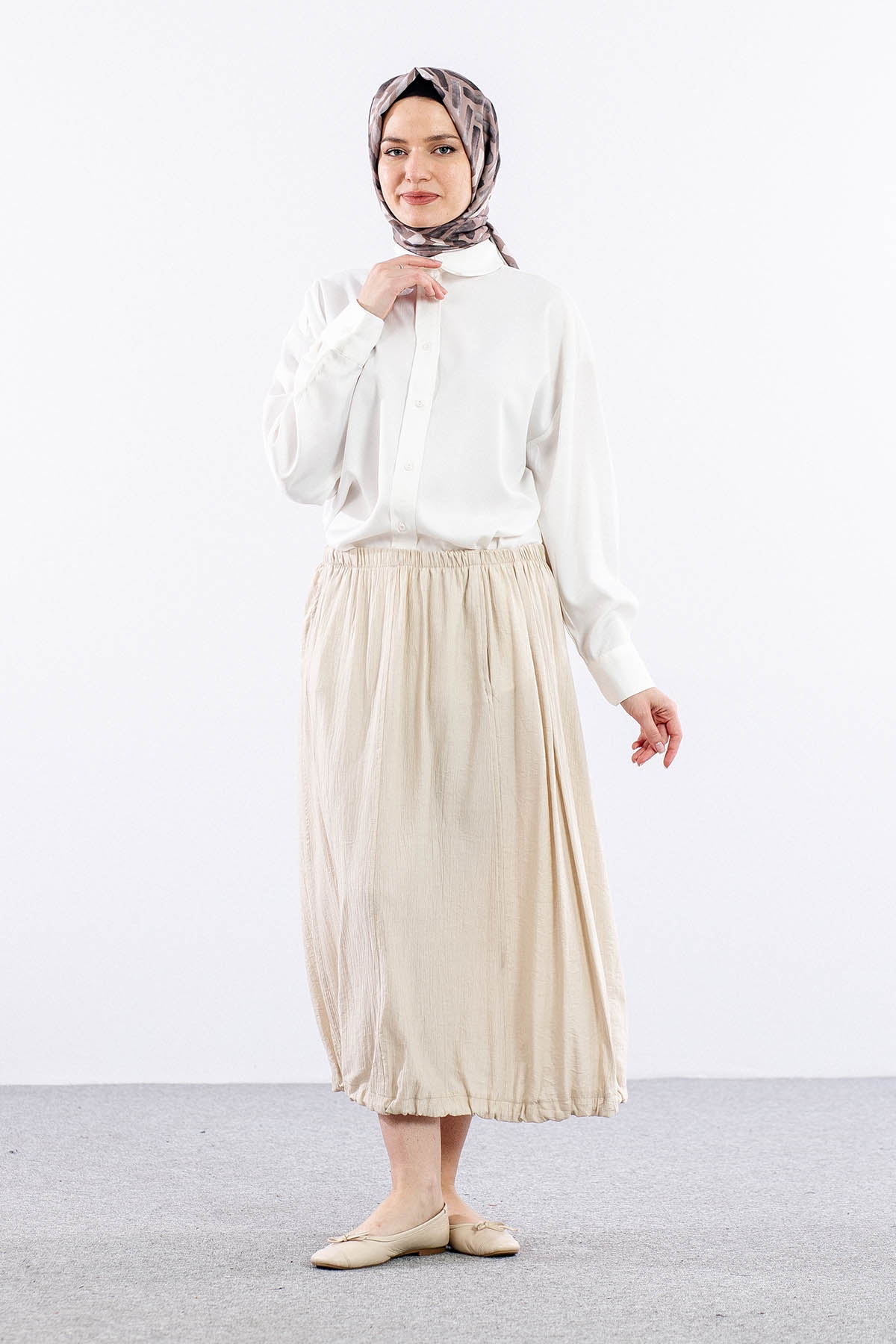 9483-00 Etek 36-42 Eteği Büzgü - Bej