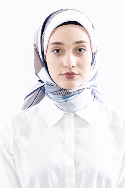 Dg14816 Eşarp Polyester Kumas Cizgi - Lacivert - 4