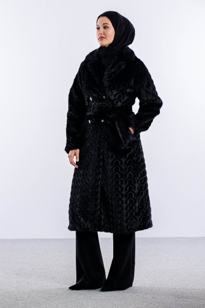 F-1571 Kürklü Kaban 38-48 - Kahve